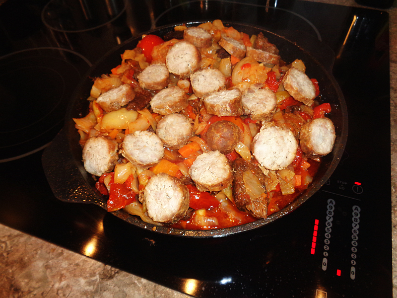 Потом колбасу и зелень с чесноком и через полчасаааа….